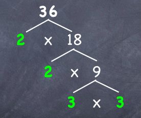 Take the number 36, for example. Prime factorization of 36 (Figure 1) reveals that the “building blocks” of 36 are two 2’s and two 3’s.