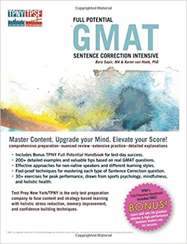 Full Potential GMAT Sentence Correction Intensive, by Bara Sapir and Karen Van Hoek For students looking to beef up their GMAT verbal score, this Sentence Correction intensive features 200+ sample questions, effective approaches for non-native English speakers, and fool-proof techniques for mastering each type of GMAT S.C. question. Moreover, the “Full Potential” section addresses all the psychological and emotional processes involved in test-taking. |